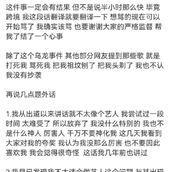 他说自己没有抄袭,因为没有那个250抄袭会照搬,网友们也相信他,因为他是有才华的,那么多首大火的原创歌曲都没有被扒出过抄袭,一首不红的歌怎么可能是抄袭呢?