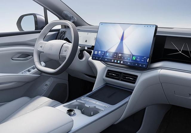 内饰方面,新车提供海盐灰、暮云灰两款内饰颜色,全系标配15.6英寸大尺寸的悬浮屏。搭载两幅式方向盘,双色设计。中控台保留物理快捷操作按键,采用怀挡设计。